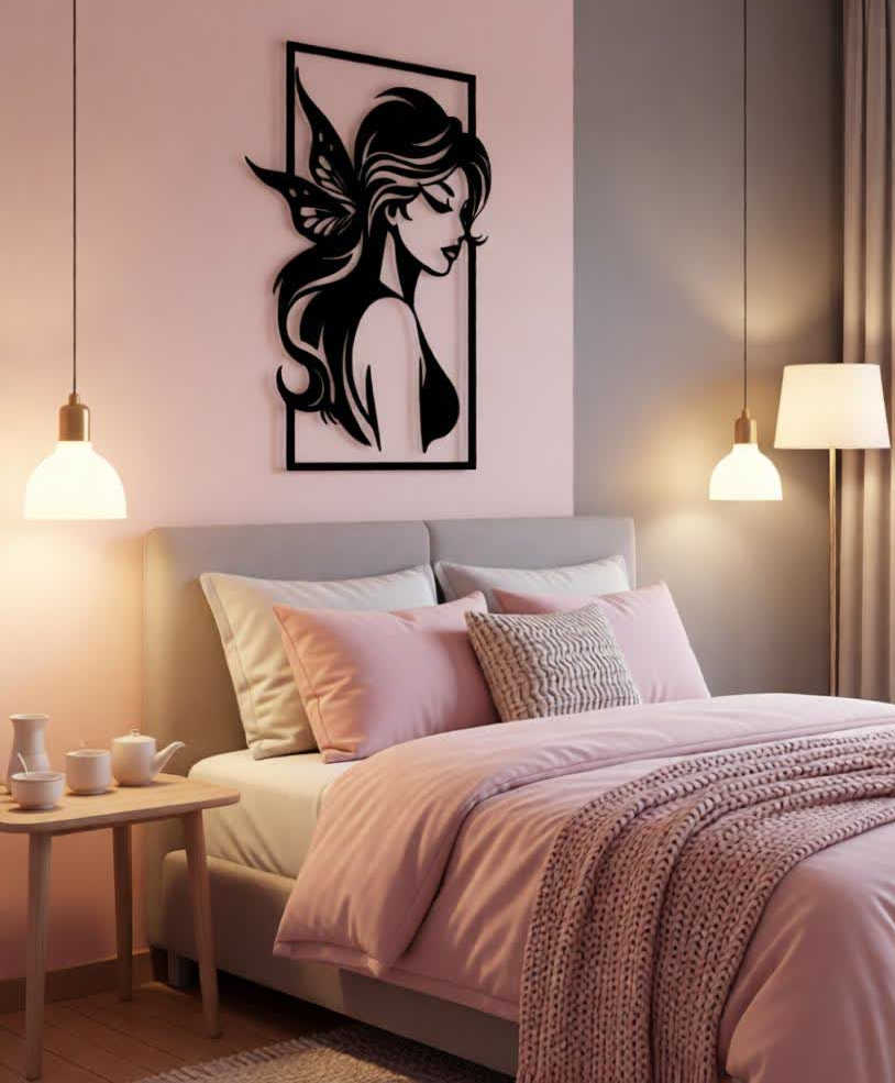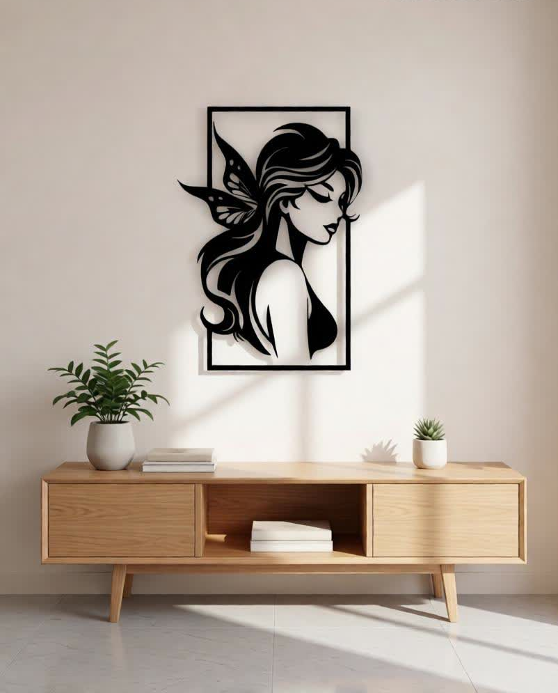 Add a touch of elegance and fantasy to your space with the Angel Woman CNC Metal Wall Art. This beautifully crafted design showcases a graceful female profile accented with delicate angel wings, symbolizing freedom, beauty, and inner strength.