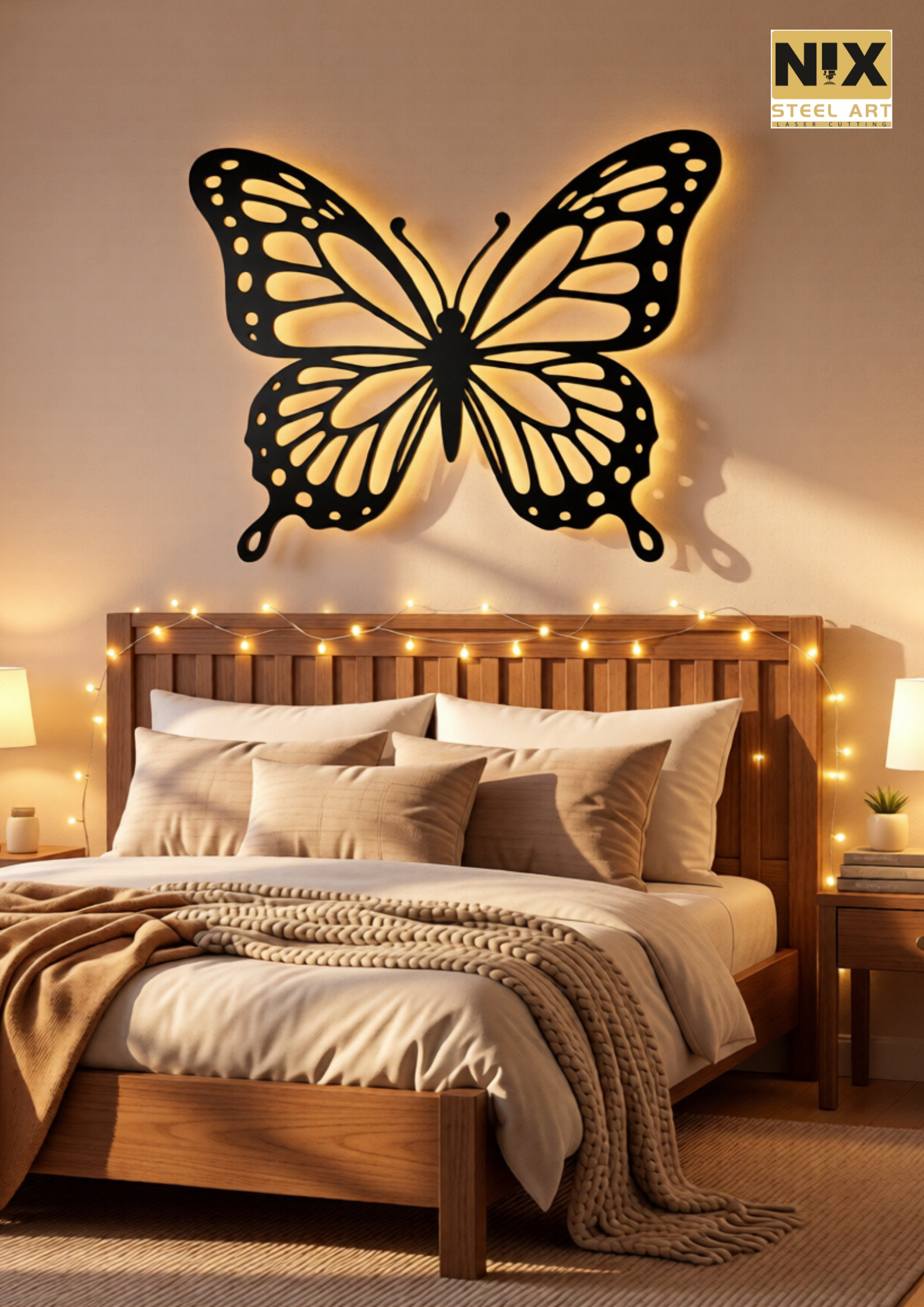 Add elegance, warmth, and artistic charm to your space with our Butterfly Backlit CNC Metal Wall Art. Expertly crafted using advanced CNC laser cutting technology, this beautiful butterfly design symbolizes freedom, transformation, and positivity.