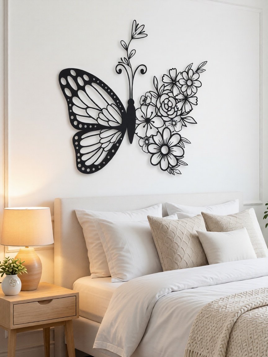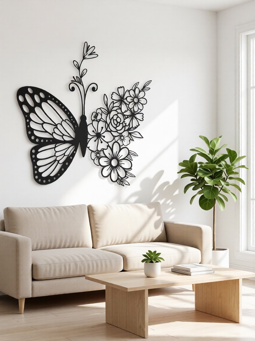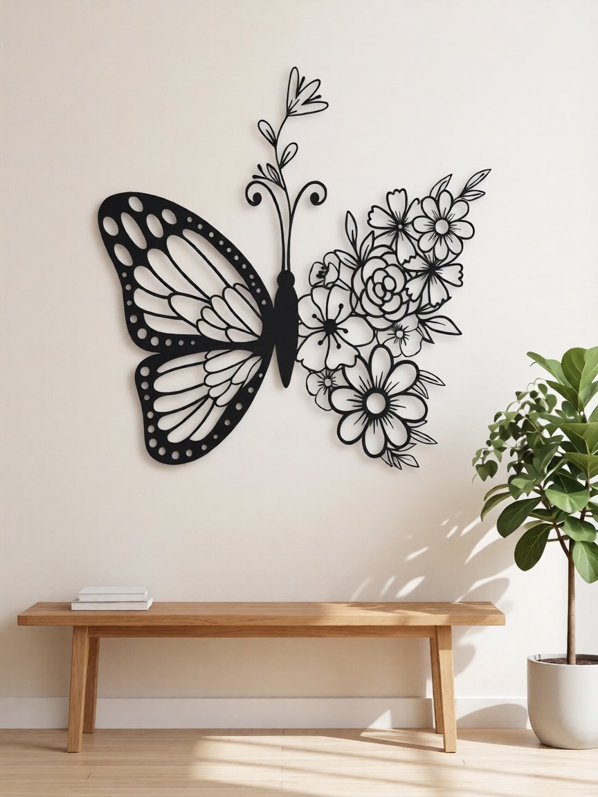 Perfect for those who love floral décor with a modern twist, this CNC metal butterfly wall art complements minimalist, contemporary, and artistic interior styles effortlessly.