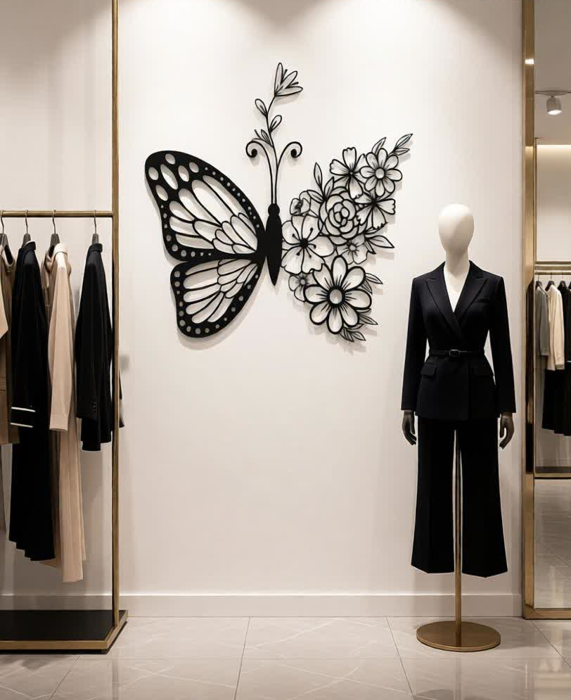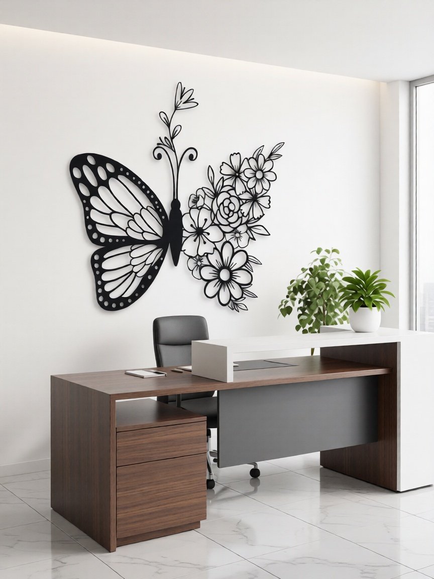 Add elegance, beauty, and artistic charm to your interiors with the Butterfly & Floral CNC Metal Wall Art. This graceful design features a delicately detailed butterfly paired with blooming floral patterns, symbolizing transformation, growth, and natural harmony. Its refined line-art style creates a soft yet striking visual statement for modern living spaces.