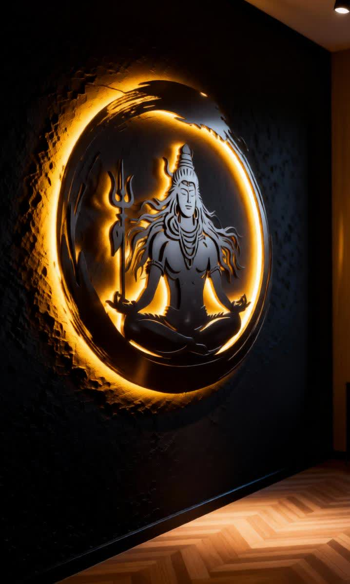 Create a peaceful and powerful ambiance in your space with this Lord Shiva Meditation LED Metal Wall Art. Featuring Mahadev seated in a deep meditative posture within a circular aura, this design symbolizes balance, inner strength, and spiritual awakening.